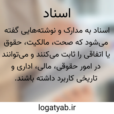 کلمه «اسناد» در زبان فارسی به مدارک و نوشته‌هایی گفته می‌شود که صحت، مالکیت، حقوق یا اتفاقی را ثابت می‌کنند و می‌توانند در امور حقوقی، مالی، اداری و تاریخی کاربرد داشته باشند. اسناد شامل انواع مختلفی هستند، مانند سند مالکیت، سند رسمی، سند تاریخی، رسید، قرارداد و نامه‌های اداری که هر یک نقش قانونی یا اثباتی ویژه‌ای دارند. این مدارک می‌توانند کتبی، الکترونیکی یا حتی مکتوب به صورت تصویری و صوتی باشند و هدفشان ثبت و اثبات یک موضوع یا عمل است. در امور حقوقی، اسناد نقش مهمی در اثبات ادعاها و دفاع از حقوق افراد دارند و به دادگاه‌ها و مراجع قانونی ارائه می‌شوند. در امور مالی هم شامل چک، فاکتور، رسید و اوراق بهادار هستند که تراکنش‌ها و معاملات را ثبت می‌کنند. همچنین اسناد تاریخی به پژوهشگران کمک می‌کنند تا روند وقایع گذشته، فرهنگ و اقتصاد یک جامعه را بررسی کنند و اطلاعات دقیق و موثق به دست آورند. نگهداری و حفاظت این مدارک از اهمیت بالایی برخوردار است، زیرا از بین رفتن یا تغییر آن‌ها می‌تواند باعث بروز اختلافات و مشکلات قانونی شود. آن‌ها همچنین در سازمان‌ها و نهادها برای مدیریت و نظم‌دهی امور داخلی، ثبت عملکردها و شفاف‌سازی فعالیت‌ها به کار می‌روند.