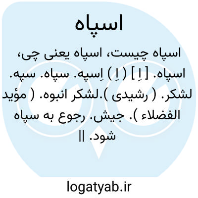 سپاه، اسپاه، اسپه، سپه: لشکر، قشون، امروزه قسمتی ازارتش رامیگویندکه شامل چندلشکرباشد