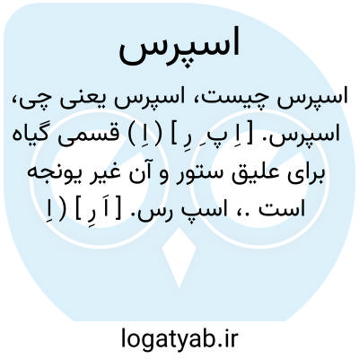 اسپرس. [ اِ پ ِ رِ ] ( اِ ) قسمی گیاه برای علیق ستور و آن غیر یونجه است.، اسپ رس. [ اَ رِ ] ( اِ مرکب ) اسب رس. اسپ ریز. اسپ ریس. اسفریس. میدان اسب دوانی. رجوع به اسب ریس و اسپ ریس و اسپرسا شود. || میدان. ( برهان ). ( جهانگیری ). عرصه. ( برهان ). || میدان جنگ. رزمگاه.