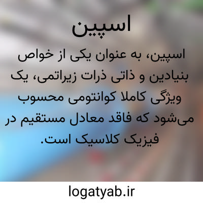 این واژه به عنوان یکی از خواص بنیادین و ذاتی ذرات زیراتمی، یک ویژگی کاملاً کوانتومی محسوب می‌شود که فاقد معادل مستقیم در فیزیک کلاسیک است. نزدیک‌ترین مفهوم کلاسیک به این واژه، اندازه حرکت زاویه‌ای است؛ با این حال، در چارچوب مکانیک کوانتومی، عملگر آن از قوانین جابجایی دقیقاً مشابه با عملگرهای اندازه حرکت زاویه‌ای تبعیت می‌کند. از منظر ریاضی، انواع مختلف با نمایش‌های متفاوتی مرتبط هستند، در حالی که اندازه حرکت زاویه‌ای از جبر لی پیروی می‌کند. همانند جرم و بار، اسپین نیز مقداری متمایز برای هر ذره بنیادی است و می‌تواند مقادیری برابر با صفر، یا هر عدد صحیح و نیمه‌صحیح مثبت اختیار کند.