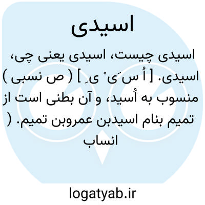 اسیدی. [ اُ س َی ْ ی ِ ] ( ص نسبی ) منسوب به اُسید، و آن بطنی است از تمیم بنام اسیدبن عمروبن تمیم. ( انساب سمعانی ).