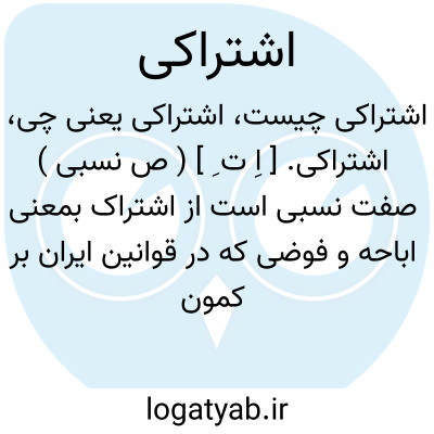 اشتراکی. [ اِ ت ِ ] ( ص نسبی ) صفت نسبی است از اشتراک بمعنی اباحه و فوضی که در قوانین ایران بر کمونیست یا پیرو مرام کمونیزم اطلاق میشود. ولی در تداول عربی زبانان امروز کلمه «اشتراکی » بمعنی سوسیالیست و کلمه «شیوعی » بجای کمونیست بکار میرود. اگر کلمه بمفهوم نخستین بکار رود، بر گروهی اطلاق میشود که معتقدند باید لغو مالکیت فردی و اختلاف طبقاتی را از راه انقلاب پدید آورد و تولید را به مرحله ای رسانید که هر کس بقدر حاجتش از اجتماع بهره برد، و اگر بمفهوم دوم باشد، بر دسته ای اطلاق میشود که همان هدف را از طریق مبارزات پارلمانی میطلبند نه انقلاب و معتقدند هر کس باید بمیزان کار و لیاقتش از اجتماع برخوردار شود.