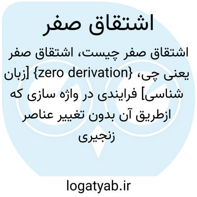 {zero derivation} [زبان شناسی] فرایندی در واژه سازی که ازطریق آن بدون تغییر عناصر زنجیری یک واژه، واژه ای جدید با مقولۀ نحوی جدید ساخته می شود