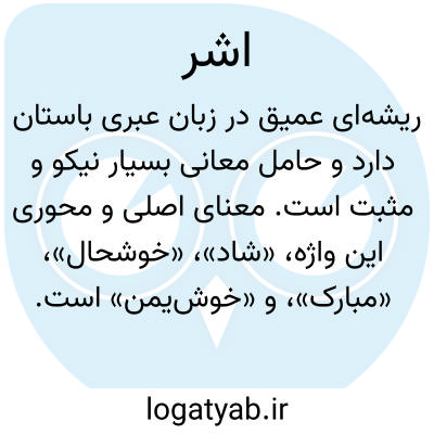 نام «آشر» با تلفظی نزدیک به «آشِر» در زبان فارسی، ریشه‌ای عمیق در زبان عبری باستان دارد و حامل معانی بسیار نیکو و مثبت است. معنای اصلی و محوری این واژه، «شاد»، «خوشحال»، «مبارک»، و «خوش‌یُمن» است؛ مفهومی که بیانگر نیک‌بختی و سرورمندی در زندگی فرد است. این بار معنایی مثبت، نام آشر را به یکی از نام‌های پرکاربرد و محبوب در فرهنگ‌های مرتبط با متون سه‌گانه ابراهیمی تبدیل کرده است. این نام فراتر از یک برچسب صرف، نوعی آرزومندی برای کامیابی و سعادت ابدی برای حامل آن محسوب می‌شود.