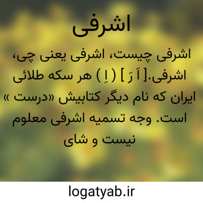 اشرفی.[ اَ رَ ] ( اِ ) هر سکه طلائی ایران که نام دیگر کتابیش «درست » است. وجه تسمیه اشرفی معلوم نیست و شایداشرف نام شاهی بوده در قدیم و به اسم او آن سکه مسمی شد، مثل اینکه عباسی سکه ای بود بنام شاه عباس صفوی ( قرن دهم هجری ) و اکنون هم دویست دینار را یک عباسی میگویند، یا اینکه اشرف افغان فاتح اصفهان در اوایل قرن دوازدهم هجری آنرا اختراع کرده و بنام او اشرفی خوانده شد، و یا اینکه ابتداءً در شهر اشرف آن طور سکه زده شد. اکنون اشرفی ایران سه جور است: 1 - یک تومانی که یک مثقال طلا دارد. 2 - پنجهزاری که نیم مثقال طلا دارد. 3 - دوهزاری که ربع مثقال طلا دارد. در فارسی اشرفی بزرگ ممالک دیگر را لیره میگویند که مأخوذ از زبان ترکی عثمانی است و در ترکی از زبان یونانی ( لیبرا ) گرفته شد. ( از فرهنگ نظام ). یک قسم زر مسکوکی که تا چند سال قبل، 18نخود وزن آن بود و اکنون کمتر از پانزده نخود وزن دارد. ( ناظم الاطباء ). درست زر و این منسوب است به اشرف که پادشاهی بود و سکه زر به وزن دو ماشه بزمان اورواج یافت. ( از آنندراج بنقل از شرح دیوان حافظ ).