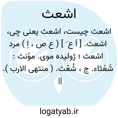 اشعث. [ اَ ع َ ] ( ع ص، اِ ) مرد اشعث؛ ژولیده موی. مؤنث: شَعْثاء. ج، شُعْث. ( منتهی الارب ). || گیاه خشک بهمی. ( منتهی الارب ) ( از اقرب الموارد ). || وتد. ( اقرب الموارد ). وتد و میخ چوبین. ( منتهی الارب ). || اسب پشت ناخاریده. ( منتهی الارب ). || الذی یتبذل نفسه و لایصونها. ( اقرب الموارد ).