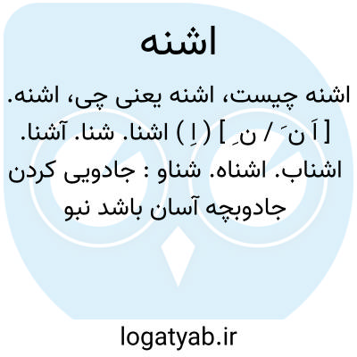 اشنه. [ اَ ن َ / ن ِ ] ( اِ ) اشنا. شنا. آشنا. اشناب. اشناه. شناو:
