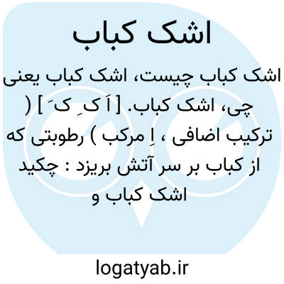 اشک کباب. [ اَ ک ِ ک َ ] ( ترکیب اضافی، اِ مرکب ) رطوبتی که از کباب بر سر آتش بریزد: