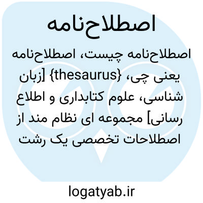 {thesaurus} [زبان شناسی، علوم کتابداری و اطلاع رسانی] مجموعه ای نظام مند از اصطلاحات تخصصی یک رشته که روابط معنایی میان آنها مشخص باشد
