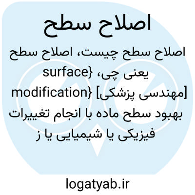 {surface modification} [مهندسی پزشکی] بهبود سطح ماده با انجام تغییرات فیزیکی یا شیمیایی یا زیستی متفاوت با آنچه از ابتدا بر سطح ماده وجود داشته است