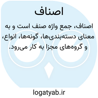 اصناف، جمع واژۀ صِنْف است و به معنای دستهبندیها، گونهها، انواع، و گروههای مجزا به کار میرود. این واژه در ادبیات و زبان فارسی، از دیرباز به عنوان مترادف قسمها و «انواع» مطرح بوده است، چنانچه در منابع لغتنامههای معتبر نظیر منتهی الارب، دهار، ناظم الاطباء و اقرب الموارد نیز به صراحت به این معنا اشاره شده است. در واقع، «اصناف» دلالت بر تمایزگذاری و تقسیمبندی کلان بر اساس ویژگیهای مشترک دارد، خواه این ویژگیها ماهوی باشند یا اعتباری.