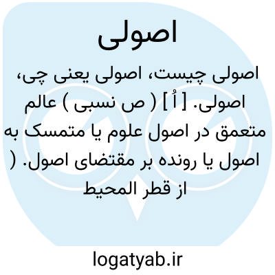 ( صفت ) منسوب به اصول ۱ - پیرو اصول و قواعد. ۲ - دانشمند علم اصول ( فقه ). ۳ - متکلم باعتبار اینکه دربار. اصول عقاید بحثمیکند. جمع: اصولیون اصولیین.