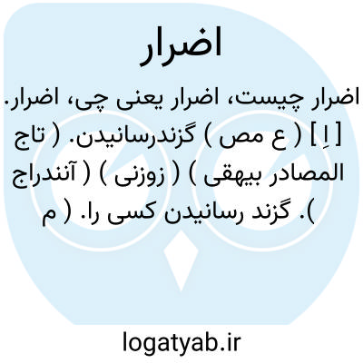 کان تریاقست و بی اضرار نیست.مولوی.|| بر سر زن دیگری خواستن. ( منتهی الارب ) ( ناظم الاطباء ). زن بر سر زن آوردن. ( آنندراج ). بیش از یک زن کردن و باوسنی گشتن زن. ( تاج المصادر بیهقی ) ( زوزنی ). باوسنی گشتن زن، یعنی زنی را بر زن دیگر نکاح کردن. ( لغت خطی ). بر سر زن زناشویی کردن. ( از اقرب الموارد ). || نزدیک شدن توجبه دیوار را. ( منتهی الارب ) ( ناظم الاطباء ). نزدیک شدن سیل به دیوار. ( از اقرب الموارد ). || سخت نزدیک شدن. ( آنندراج ). نزدیک شدن یکی بدیگری چنانکه به وی بچسبد. ( از اقرب الموارد از الاساس ). || نزدیک شدن ابر بزمین. ( از اقرب الموارد ). قریب زمین شدن ابر. ( منتهی الارب ). و درناظم الاطباء «ابر» بغلط «اسب » شده است. قریب شدن ابر زمین را. ( آنندراج ). || گزیدن اسب لگام را. ( منتهی الارب ) ( ناظم الاطباء ). به دندان گرفتن اسب لجام را و خاییدن آن. ( از آنندراج ). گزیدن اسب کام لگام را. اضزاز. ( از اقرب الموارد ). و رجوع به اِضْزاز شود. || اضرار دویدن؛ قدری شتاب کردن در آن. ( از اقرب الموارد ). دویدن. ( منتهی الارب ) ( ناظم الاطباء ) ( آنندراج ). || اضرار به چیزی و بر چیزی؛ شتاب کردن بدان یا بر آن. ( از اقرب الموارد ). شتابی کردن. ( منتهی الارب ) ( ناظم الاطباء ). شتاب نمودن. ( آنندراج ). || به ستم کسی را بر کاری داشتن. ( منتهی الارب ) ( ناظم الاطباء ) ( از آنندراج ). به اکراه کسی را بر کاری داشتن. || شکیبایی کردن بر سیر شدید. || اضرار مرد؛ راحت شدن بر وی نیاز بمال. || رجل ٌ ضر اضرار؛ یعنی در رای خود داهیه است. ( از اقرب الموارد ).