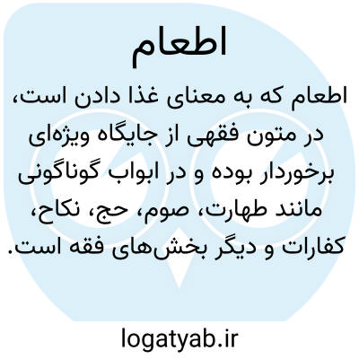[ویکی فقه] غذا دادن را اطعام گویند. در فقه از آن در باب های طهارت، صوم، حج، جهاد، تجارت، نکاح، کفّارات، اطعمه و اشربه، غصب و ارث سخن رفته است.