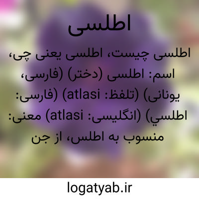 اسم: اطلسی (دختر) (فارسی، یونانی) (تلفظ: atlasi) (فارسی: اطلسي) (انگلیسی: atlasi)