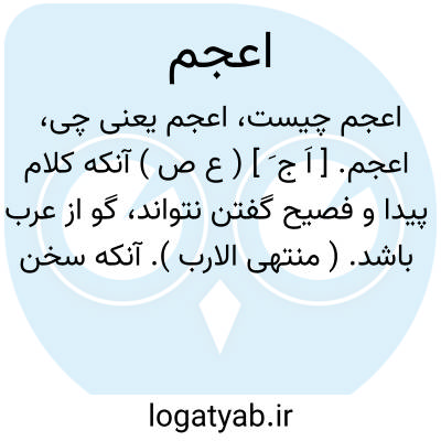 ( صفت ) ۱ - کسی که نتواند فصیح سخن گوید زبان بسته بسته زبان. ۲ - کسی که نتواند بزبان عربی تکلم کند. ۳ - کسی که عرب نباشد. جمع: اعاجم.