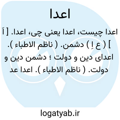 اعدا. [ اَ ] ( ع اِ ) دشمن. ( ناظم الاطباء ). اعدای دین و دولت؛ دشمن دین و دولت. ( ناظم الاطباء ). اعدا عدو؛ بطور مبالغه یعنی سخت دشمن و دشمن بزرگ. ( ناظم الاطباء ). دشمنان.