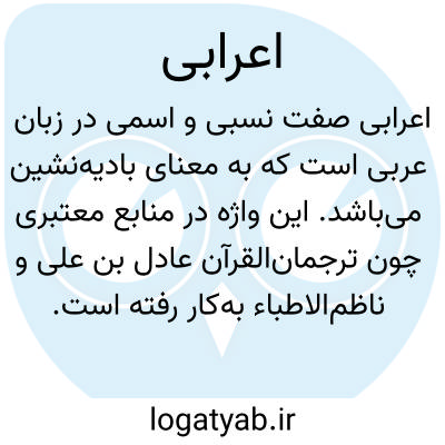 اعرابی. [ اَ بی ی ] ( ع ص نسبی، اِ ) بادیه نشین. ( ترجمان القرآن ترتیب عادل بن علی ). منسوب به اعراب. ( ناظم الاطباء ). عرب بیابانی. تازی بادیه نشین. ( ازفرهنگ فارسی معین ). بمعنی یکی از اعراب و این منسوب است به اعراب که بمعنی عربان صحرانشین است. ( غیاث اللغات ). یکی از اعراب و این منسوب است به اعراب که بمعنی صحرانشین است. ( آنندراج ). گویند یکی ِ اعراب که بمعنی صحرانشین است. و در صحاح آمده که «اعرابی منسوب به اعراب است و این کلمه مفرد از خود ندارد و اعراب جمع عرب نیست که مانند نبط و انباط باشد بلکه عرب اسم جنس است ». و جمع اعراب در لغت فصیح اَعاریب آمده است چنانکه در «اعاریب ذوو فخر بافک ». ( از اقرب الموارد ). منسوب به اعراب. یکی ِ آن و اعراب جمع عرب نیست، زیرا اسم جنس است. ( از منتهی الارب ). بیابانی. ( دستوراللغة ) ( مؤید الفضلاء ). عرب جاهل. ( تعریفات جرجانی ). یک نفر مرد تازی. ( ناظم الاطباء ). یک تن از مردم بادیه. یک تن از اعراب بیابان باش. یک تن از اعراب یعنی تازی صحرانشین. ( یادداشت بخط مؤلف ):