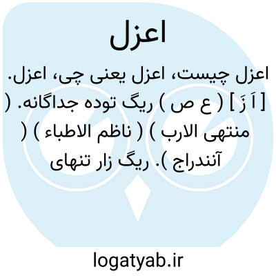 اعزل. [ اَ زَ ] ( ع ص ) ریگ توده جداگانه. ( منتهی الارب ) ( ناظم الاطباء ) ( آنندراج ). ریگ زار تنهای جدامانده. ( از اقرب الموارد ). || ستور کج دنب، عادةً نه خلقةً و آن عیب است. ( منتهی الارب ). ستور کج دنب که از روی عادت باشد نه خلقت و آن عیب است. ( ناظم الاطباء ). از ستور آنکه دمش کج باشد ازروی عادت نه از جهت خلقت و آن عیب است. ( از اقرب الموارد ). اسب کژدنبال. ( مهذب الاسماء نسخه خطی ). ستوری که دنبال بر یک سوی دارد از عادت و آن عیب است. ( تاج المصادر بیهقی ). ستور کژدنب عادةً و نه خلقةً و آن عیب است. ( آنندراج ). || ابر که باران درآن نباشد. ( از اقرب الموارد ). || بهره غائب از گوشت. ( منتهی الارب ) ( آنندراج ). نصیب غایب از گوشت. ( از اقرب الموارد ). || مرد بی سلاح. ( آنندراج ) ( غیاث اللغات ) ( ناظم الاطباء ) ( منتهی الارب ).آنکه سلاح همراه ندارد. تقول: اعوذ باﷲ من الاعزل علی الاعزل؛ ای من الرجل الذی لا سلاح معه علی الفرس المعوج.( از اقرب الموارد ). بی سلاح. ( مصادر زوزنی ) ( تاج المصادر بیهقی ). || آنکه یکی از استخوان سرینش ناقص باشد. ( منتهی الارب ). کسی که یکی از استخوانهای سرینش ناقص باشد. ( ناظم الاطباء ). ج، عُزل، اَعزال، عُزَّل، عُزلان، مَعازیل. ( منتهی الارب ) ( ناظم الاطباء ) ( اقرب الموارد ). || ( اِخ ) یکی از دو سماک که دو ستاره است بدان جهت که سلاح ندارد چنان که با رامح می باشد یا آنکه چون طلوع کند در ایام آن باد و سردی نباشد. ( از اقرب الموارد ). نام ستاره ای که آنرا سماک اعزل گویند، چه قریب او کوکبی که بمنزله سلاح ونیزه او باشد نیست بخلاف سماک رامح که قریب او کوکبی است که بمنزله سلاح و نیزه باشد. ( از شرح قران السعدین و منتخب از غیاث اللغات ) ( آنندراج ):