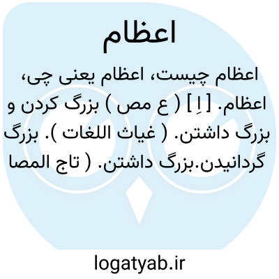 اعظام. [ اِ ] ( ع مص ) بزرگ کردن و بزرگ داشتن. ( غیاث اللغات ). بزرگ گردانیدن.بزرگ داشتن. ( تاج المصادر بیهقی ) ( منتهی الارب ) ( آنندراج ) ( ناظم الاطباء ). عظمت گذاشتن و بزرگ داشتن کسی را. ( از اقرب الموارد ). || ببزرگی صفت کردن. بزرگ دیدن کسی را. ( منتهی الارب ) ( ناظم الاطباء ) ( آنندراج ). بزرگ شمردن و بزرگ دیدن کسی را. ( از اقرب الموارد ). || ( اِ ) در اصطلاح علمای هندسه، نامی است برای جذر ذوالاسمین رابع. ( از کشاف اصطلاحات الفنون ). و رجوع به کتاب مزبور ذیل کلمه اسم شود. || بزرگ شدن امری: اعظم الامر؛ بمعنی عظم. ( از اقرب الموارد ). || استخوان خورانیدن سگ را. ( منتهی الارب ) ( آنندراج ) ( ناظم الاطباء ). استخوان بغذا به سگ دادن. ( از اقرب الموارد ). || ومایعظمنی ان افعل کذا؛ ای مایهولنی. ( اساس از اقرب الموارد ). || توقیر. احترام. تعظیم و ستایش. ( ناظم الاطباء ). بزرگ داشت. ( یادداشت بخط مؤلف ).