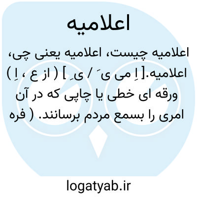 اعلامیه.[ اِ می ی َ / ی ِ ] ( از ع، اِ ) ورقه ای خطی یا چاپی که در آن امری را بسمع مردم برسانند. ( فرهنگ فارسی معین ). بیان نامه. اعلان. نوشته ای که بمنظور آگاه ساختن مردم بر امری انتشار دهند. ( از یادداشتهای مؤلف ).