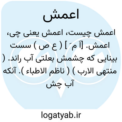 اعمش. [اَ م َ ] ( ع ص ) سست بینایی که چشمش بعلتی آب راند. ( منتهی الارب ) ( ناظم الاطباء ). آنکه آب چشم او میریزد بجهت بیماری. ( آنندراج ). آنکه ببیند و از چشمش آب میریزد. ( بحر الجواهر ). آنک بد بیند و آب همی ریزد. ( تاج المصادر بیهقی ). خوچیده چشم. ( المصادر زوزنی چ تقی بینش حاشیه ص 338 ). آنکه بد بیند و از چشم آب همی ریزد، یقال: اعمش و ارمش ( اتباع ). ( مهذب الاسماء نسخه خطی ). آنکه آب از چشمش بسبب مرض جاری باشد. ( از منتخب و لطائف از غیاث اللغات ). آنکه ضعف باصره با ریزش آب از چشم دارد. آب ریزنده چشم و ضعیف بینا. آنکه از چشم وی آب رود. آنکه آب از چشمش رود و نیک نتواند دید. سست بینایی که چشمش به علتی آب راند. آنکه ببیند و ازچشمش آب همی ریزد. ( یادداشتهای مؤلف ):