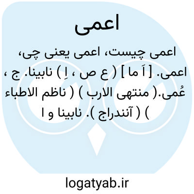 گر درآید در خیال چشم اعمی روی تو.سعدی.بینش اعمی بمقدار عصایی ( کذا ) بیش نیست.وحید قزوینی.|| نادان.ج، اَعماء. قیل و منه: لم حشرتنی اعمی؛ ای عن حجتی و قد کنت بصیراً؛ ای عالماً بها. ( منتهی الارب ) ( ناظم الاطباء ). نادان. ( آنندراج ). جاهل. ج، اَعماء. ( از اقرب الموارد ). نادان. ( المنجد ). و قولهم «ما اعماه » انما یراد به «ما اعمی قلبه » لاِ َٔن ذلک ینسب الیه الکثیرالضلال. و لایقال فی عمی العیون «ما اعماه » لاِ َٔن ما لایتزید لایتعجب منه. || مکان اعمی؛ ای لایهتدی فیه. ( المنجد ). || لقیته اعمی؛ ای فی اشدالهاجرة. ( منتهی الارب ) ( ناظم الاطباء ). لقیته صکة اعمی؛ ای فی اشدالهاجرة حراً. ( اقرب الموارد ). || نام یک قسم است از دو قسم زوج پنجم از زوجهای عصبها که از دماغ رسته. شیخ میفرماید احتمال دارد که نام آن رهگذر باشد که این قسم پی در آنجا میگذرد. ( بحر الجواهر ). || یک چشم. ( بحر الجواهر ). || ثقبه ای که شاخ دوم از عصب اندر استخوان حجری در آن پیچیده است. مؤلف ذخیره خوارزمشاهی آرد: و شاخ دوم [از عصب ] اندر ثقبه ای پیچیده که اندر استخوان حجری اندر آمده است و این ثقبه را اعور گویند و اعمی نیز گویند از بهر پیچیدگی را که سخت پیچیده است. ( ذخیره خوارزمشاهی ). در تشریح، عبارتست ازسوراخ استخوان حجری. ( بحرالجواهر ).
