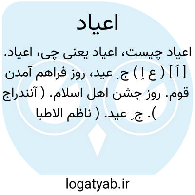 اعیاد. [ اَ ] ( ع اِ ) ج ِ عید، روز فراهم آمدن قوم. روز جشن اهل اسلام. ( آنندراج ). ج ِ عید. ( ناظم الاطباء ). ج ِعید، خوی گرفته و هرچه بازآید از اندوه و بیماری و غم و اندیشه و مانند آن و روز فراهم آمدن قوم و روز جشن اهل اسلام. در اصل واوی است و به یاء جمع بندند بجهت لازم بودن یاء در مفرد آن و گفته اند: بجهت فرق میان آن و اعوادالخشب. ( از منتهی الارب ). ج ِ عید، یعنی آنچه خوی گرفته ای به آن از بیماری و غم و اندوه و مانند آن. قال: «فالقلب یعتاده من حُبّها عید». و موسم و هر روز که فراهم آیند برای تذکار صاحب فضلی یا امرمهمی. ابن اعرابی گوید: زیرا در هرسال شادی تازه ای باشد. در اصل «عِوْد» بوده و واو ساکن بجهت کسره ماقبل به یاء بدل شد و مصغر و جمع آن «اعیاد» باشد به یک لفظ بجهت ملازم بودن یاء در مفرد آن یا بجهت فرق میان آن و اعوادالخشب. ( از اقرب الموارد ). ج ِ عید، یعنی عیدها: که در جمعات و اعیاد و در آن ثناء باری عز اسمه می گویند. ( کلیله و دمنه ). در ممالک خویش در ایام اعیاد و جمعات، خطبه به این هر دو قلب منور و مزین گردانند. ( ترجمه تاریخ یمینی ص 284 ).