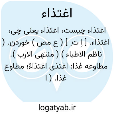 اغتذاء. [ اِ ت ِ ] ( ع مص ) خوردن. ( ناظم الاطباء ) ( منتهی الارب ). مطاوعه غذا: اغتذی اغتذاءً؛ مطاوع غذا. ( از اقرب الموارد ). || پرورش یافتن. ( منتهی الارب ) ( ناظم الاطباء ).