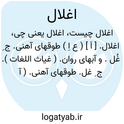 اغلال. [ اَ ] ( ع اِ ) طوقهای آهنی. ج ِ غُل. و آبهای روان. ( غیاث اللغات ). ج ِ غل. طوقهای آهنی. ( آنندراج ). ج ِ غل، یعنی تشنگی یا سختی و سوزش تشنگی و سوزش شکم و گردن بند و هر چیز که گرد گیرد چیزی را. ( منتهی الارب ). ج ِ غل یعنی طوق آهنی یا آنچه دست و گردن را با آن بندند و جز آن. ( از اقرب الموارد ). || ج ِ غَلَل یعنی سوزش و سختی تشنگی یا تشنگی و سوزش شکم و بیماریی است مر گوسپندان را وآب روان در میان درختان و آب که بر روی ریگ گاه ناپیدا شود و پالونه. ( منتهی الارب ) ( از اقرب الموارد ). || مأخوذ از تازی. غلها و زنجیرهائی که برگردن ِ بندی اندازند. ( ناظم الاطباء ). غلهای آهنینی که بر گردن آویزند. ( یادداشت بخط مؤلف ):