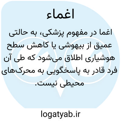 اغما در مفهوم پزشکی، به حالتی عمیق از بیهوشی یا کاهش سطح هوشیاری اطلاق میشود که طی آن فرد قادر به پاسخگویی به محرکهای محیطی نیست. این وضعیت میتواند ناشی از علل مختلفی باشد، از جمله مسمومیتهای دارویی یا سموم، نارسایی کلیوی (اورمی)، اختلالات متابولیک شدید مانند دیابت کنترلنشده (مرض قند)، مصرف بیش از حد الکل (الکلیسم) و سایر آسیبهای مغزی یا اختلالات سیستم عصبی مرکزی. در این حالت، فعالیتهای حیاتی مغز به شدت تحت تأثیر قرار گرفته و توانایی فرد برای بیداری یا برقراری ارتباط با محیط اطراف به طور موقت یا دائم از بین میرود.