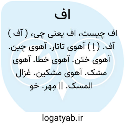 ( آف ) آف. ( اِ ) آهوی تاتار. آهوی چین. آهوی ختن. آهوی خطا. آهوی مشک. آهوی مشکین. غزال المسک. || مِهر. خور. شمس.