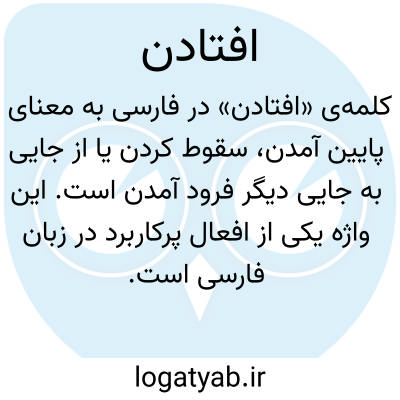 کلمه‌ی «افتادن» در فارسی به معنای پایین آمدن، سقوط کردن یا از جایی به جایی دیگر فرود آمدن است. این واژه یکی از افعال پرکاربرد در زبان فارسی است و می‌تواند هم به صورت جسمانی (مثل افتادن جسم یا انسان) و هم به صورت مجازی و استعاری (مثل افتادن در مشکلات یا گناه) استفاده شود. «افتادن» نشان‌دهنده حرکت ناگهانی یا غیرارادی به پایین یا از حالت طبیعی خارج شدن است و در زندگی روزمره، ادبیات و متون کهن به وفور کاربرد دارد. این واژه همچنین می‌تواند معنای رخ دادن، پیش آمدن یا رخدادن واقعه‌ای را نیز داشته باشد، به‌ویژه در متون ادبی و تاریخی. در ادبیات فارسی، این کلمه اغلب با بار معنایی احساسی و تصویری همراه است و گاهی با مفاهیمی مانند سقوط، سرنگونی، تباهی، رخداد و نابودی هم‌معنی است.