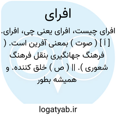 افرای. [ اَ ] ( صوت ) بمعنی آفرین است. ( فرهنگ جهانگیری بنقل فرهنگ شعوری ). || ( ص ) خلق کننده. و همیشه بطور ترکیب استعمال شود. ( ناظم الاطباء ).