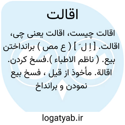اقالت. [ اِ ل َ ] ( ع مص ) برانداختن بیع. ( ناظم الاطباء ).فسخ کردن. اقالة. مأخوذ از قیل، فسخ بیع نمودن و برانداختن بیع. ( آنندراج ) ( غیاث اللغات ):