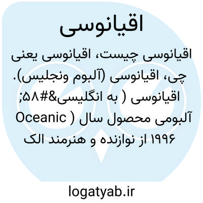 اقیانوسی (آلبوم ونجلیس). اقیانوسی ( به انگلیسی: Oceanic ) آلبومی محصول سال ۱۹۹۶ از نوازنده و هنرمند الکترونیک یونانی، ونجلیز می باشد. این آلبوم در ۲۵ اکتبر ۱۹۹۶ در اروپا و در ژانویهٔ ۱۹۹۷ در ایالات متحده منتشر شد. تک آهنگی که شامل ترانهٔ «Song of the Seas» بود در زمانی مشابه عرضه شد.