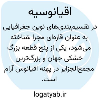 [ویکی فقه] اقیانوسیه کوچک ترین قاره جهان، در نیم کره جنوبی کره زمین واقع شده است.