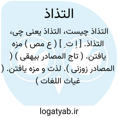 التذاذ. [ اِ ت ِ ] ( ع مص ) مزه یافتن. ( تاج المصادر بیهقی ) ( المصادر زوزنی ). لذت و مزه یافتن. ( غیاث اللغات ): بحاسه ذوق به انواع مطعوم و مشروب التذاذ میکند. ( ترجمه تاریخ یمینی ).