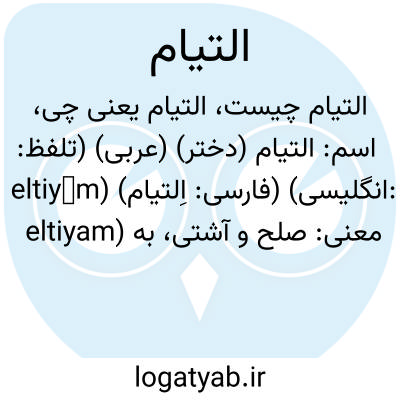 اسم: التیام (دختر) (عربی) (تلفظ: eltiyām) (فارسی: اِلتيام) (انگلیسی: eltiyam)