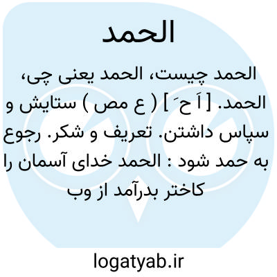 الحمد. [ اَ ح َ ] ( ع مص ) ستایش و سپاس داشتن. تعریف و شکر. رجوع به حمد شود: