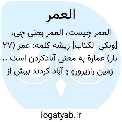 عمارة به معنی آبادکردن است.. زمین رازیرورو و آباد کردند بیش از آنچه اینها آباد کردند. عمر(بروزن عنق و فلس)دوران زندگی و مدت آبادی بدن به وسیله حیات و روح است.. عمر در آیه بر وزن (عُنُق)است و در آیه.بروزن (فلس)است طبرسی و راغب گویند:هردو وزن به یک معنی است ولی قسم مخصوص به وزن(فلس)است. علت آن اخّف بودن فتح می‏باشد. در تمام قرآن فقط در این آیه به عمر حضرت رسول«صلی‏اللَّه‏علیه‏وآله» سوگندیادشده ابن عباس گوید:خدا احدی را گرامی‏تر به خود از محمد«صلی‏اللَّه‏علیه‏وآله» نیافریده و نشنیدم خدا به زندگی کسی قسم بخورد جز به حیات آن حضرت. *** تعمیر: اعطاء زندگی.. آیا زندگی ندادیم به شما آیا زنده نگاه نداشتیم شمارا مدتی که پندشنو در آن متذکّر می‏شد؟! *** عمره:عمل مخصوصی است از اعمال حّج. وآن چنین است که شخص از میقات احرام بسته وارد مکّه می‏شود هفت بار کعبه را طواف کرده در مقام ابراهیم«علیه‏السلام»نماز طواف می‏خواند آنگاه میان دو تلّ صفاومروه هفت بارسعی و رفت وآمد می‏کند سپس به نیّت تقصیر قسمتی از موی شارب(مثلاً)را می‏گیرد و باتقصیر آن، عمل تمام است. طبرسی فرموده عمره ازعمارة است وآن به معنی زیادت می‏باشد که آبادکننده زمین آن را به وسیله عمارت زیادت می‏دهد. نگارنده گوید:بنابراین علت تسمیه عمره زایدبودن آن بر حّج است و یا آن،باعث آبادبودن بیت اللّه است.. آیامراد از تعمیرحفظ بنا و ترمیم آن است یاآباد نگاه داشتن به وسیله نظافت و چراغ روشن کردن و نمازخواندن وغیر اینهاست ؟ویابه وسیله اقامت در آن است ؟که عماره مکان بهر سه معنی آمده است. به احتمال قوی مراد حفظ بناوترمیم آن است که ظهور عمارت درآن است و آیه ماقبل که فرموده:«ماکانَ لِلْمُشْرِکینَ اَنْ یَعْمُروُا مَساجِدَاللّهِ...»ظهورش در ترمیم بناست نه زیارت و نماز خواندن. ایضاًآیه «اَجَعَلْتُمْ سِقایَةَالْحاجّ ِوَعِمارَةَالْمَسْجِدِالْحَرامِ...»که گذشت ظهورش در اصلاح بناست..استعمار بنابراستفعال طلب عمارت است یعنی خدا شمارااززمین آفریده واز شما آبادی آن را خواسته است وآن عبارت اخرای خلیفةاللّه بودن انسان است. بعضی‏ها آن را عمردادن گفته‏اند ولی برخلاف ظاهراست.. آیه شریفه گرچه مفهوماً اعّم است ولی جهت نزول آن مبیّن فضیلت علی بن ابیطالب«علیه السلام»است. عیاشی در تفسیر خود از ابی بصیر از امام صادق«علیه السلام»نقل کرده که فرموده به امیرالمؤمنین صلوات اللّه علیه گفتند:از افضل مناقب خویش ما را خبرده. فرمود:آری من وعبّاس و عثمان بن ابی شیبه درمسجد الحرام بودیم. عثمان بن ابی شیبه گفت:رسول خدا کلیدهای کعبه را به من داد. عباس گفت: رسول خدا سقایة را که زمزم باشد به من داده(تأمین آب حاجیان)ولی یا علی به تو چیزی نداده است سپس خدا نازل فرموده«اَجَعَلْتُمْ سِقایَةَالْحاجّ ِ وَعِمارَةَ الْمَسْجِدِالْحَرامِ کَمَنْ آمَنَ بِاللّهِ وَالْیَوْمِ الْآخِرِ وَ جاهَدَ فی سَبیلِ الّلهِ لایَسْتَوُونَ عِنْدَالّلهِ». در مجمع آن به تعبیر دیگری نقل کرده و به جای عثمان،طلحة آورده و از تفسیرطبری و غیره نیز نقل شده است.. رجوع شود به «رّق» و روایات و تفسیر.