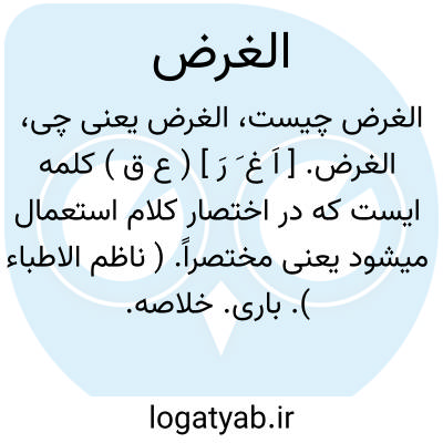 الغرض. [ اَ غ َ رَ ] ( ع ق ) کلمه ایست که در اختصار کلام استعمال میشود یعنی مختصراً. ( ناظم الاطباء ). باری. خلاصه. مع القصه. الحاصل.
