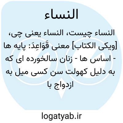 [ویکی الکتاب] معنی قَوَاعِدَ: پایه ها - اساس ها - زنان سالخورده ای که به دلیل کهولت سن کسی میل به ازدواج با آنان ندارد(جمع قاعده است، در عبارت "و القواعد من النساء اللاتی لا یرجون نکاحا " به معنای زنی است که از نکاح بازنشسته باشد، یعنی دیگر کسی به خاطر پیریاش میل به او نمیکند...