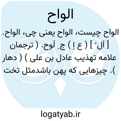 ( اسم ) جمع لوح. ۱ - لوحها صفحه های فلزی سنگی یا چوبی. ۲ - جزئی از بخش چهارم اقسام چهارگان. ( آلات موسیقی ) قدیم ایران و جزوی از سازهایی که برای هر صدا یک سیم دارند. در نوازندگی با الواح انگشتهای دست چپ بروی سیمها قرار نمیگیرد. در الواح برای ایجاد نغم. ثقیل کاس. بزرگ تنگ و از برای نغم. حاد مقابل آن لازم است.