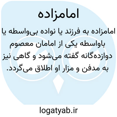 [ویکی شیعه] امامزاده به فرزند یا نواده امام معصوم و گاهی به مدفن و مزار او گفته می شود. کاربرد این واژه در این اصطلاح، از قرن ششم هجری قمری و حتی قبل از آن وجود داشته ولی از قرن نهم به بعد رایج شده است. ساخت مقبره بر مزار این امامزاگان نیز از قرن اول ثبت شده و در روایات برای سازنده آن اجرهای معنوی در نظر گرفته شده است. بعضی از این امامزاگان شهرت جهانی و بعضی نیز شهرت منطقه ای دارند. بقاع امامزادگان در ایران و کشوهای دیگر اسلامی دیده می شوند. بقاع و امامزاگان مدفون در آنها در فرهنگ مردم تاثیر داشته اند به گونه ای که گاه نام شهر یا روستا برگرفته از نام امامزادگان است.
