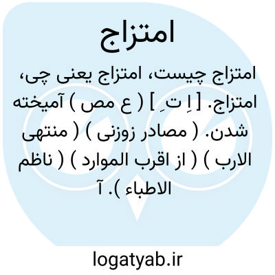 پیشتر زان کامتزاج افتد میان ما و طین.جمال الدین سلمان ( از آنندراج ). || در اصطلاح شیمی ترکیب شدن دو یا چند جسم باهم چنانکه جسم مرکب، شباهتی به اجسام مفرده خویش نداشته باشد. ( از فرهنگ فارسی معین ). || در اصطلاح منجمان نظر ماه است چنانکه گویند: امتزاجات قمر؛ یعنی نظرات قمر. ( از کشاف اصطلاحات الفنون ). || اصطلاحی است نزد علمای جفر. رجوع به کشاف اصطلاحات الفنون شود.