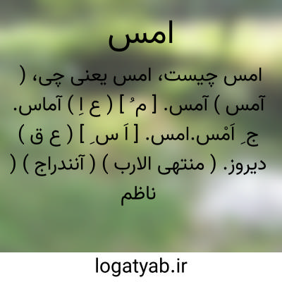 امس. [ اَ س ِ ] ( ع ق ) دیروز. ( منتهی الارب ) ( آنندراج ) ( ناظم الاطباء ) ( غیاث اللغات ). دی. ( مهذب الاسماء ). مقابل غد ( فردا ). || روزی از روزهای گذشته. ( از اقرب الموارد ) ( از المنجد ). اگر از این کلمه دیروز اراده شود مبنی بر کسر بکار میرود و اگر بمعنی روزی از روزهای گذشته بکار رود معرب است و در اینصورت الف و لام به اول آن در می آید و جمعبسته میشود: فجعلناها حصیداً کان لم تغن بالامس. ( قرآن 24/10 ). و نیز بمعنی دیروز بندرت مبنی بر فتح هم دیده شده: لقد رأیت عجباً منذ امسا. ( از المرجع ). و رجوع به اقرب الموارد و المرجع شود. || وقت نزدیک. ( آنندراج ). ج، آمُس و اُموس و آماس. ( از اقرب الموارد ). منسوب به این کلمه برخلاف قیاس اِمسی میشود. ( از المنجد ). و رجوع به مسی شود.