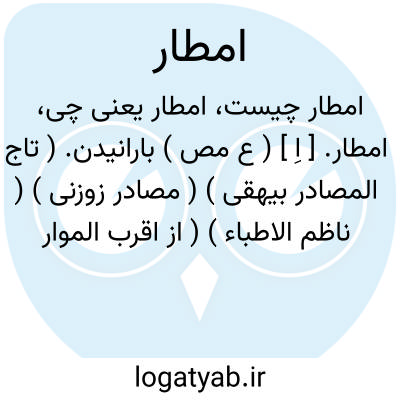 امطار. [ اِ ] ( ع مص ) بارانیدن. ( تاج المصادر بیهقی ) ( مصادر زوزنی ) ( ناظم الاطباء ) ( از اقرب الموارد ) ( منتهی الارب ). باریدن. ( بمعنی متعدی آن ). ( تاج المصادر بیهقی ) ( منتهی الارب ). باران باریدن و بارانیدن. ( آنندراج ). گویند: امطر اﷲ السماء و امطرهم اﷲ علیهم؛ و گفته نمی شود مگر در عذاب. ( از منتهی الارب ) ( ناظم الاطباء ). مَطَرَ در خیر و رحمت و اَمطَرَ در عذاب و شر گفته میشود. ( از اقرب الموارد ). || عرق آوردن پیشانی کسی. گویند:امطر الرجل و کلمت فلاناً فامطر؛ تکلم کرد فلان را پس سر فروافکند و چیزی نگفت و خاموش شد. ( ناظم الاطباء )( منتهی الارب ) ( آنندراج ) ( از اقرب الموارد ). سر فروافگندن و چیزی نگفتن و خاموش شدن. ( منتهی الارب ) ( آنندراج ): کلمت فلاناً فامطر و استطمر؛ خاموش شد و چیزی نگفت و پیشانیش عرق آورد. ( از اقرب الموارد ). || باران رسیده یافتن جای را. ( منتهی الارب ) ( آنندراج ). جایی را باران دیده یافتن. ( از اقرب الموارد ).