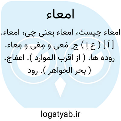 امعاء. [ اَ ] ( ع اِ ) ج ِ مَعی و مِعَی و مِعاء. روده ها. ( از اقرب الموارد ). اعفاج. ( بحر الجواهر ). رودگانیها. در حدیث است: ان المؤمن یأکل فی معاً واحداً و الکافر یأکل فی سبعة امعاء؛ یعنی ان المؤمن یأکل من وجه واحد و هوالحلال و الکافر یأکل من وجوه و لایبالی ما اکل و من این اکل. ( منتهی الارب ) ( ناظم الاطباء ). در طب قدیم روده ها را به شش قسم تقسیم کرده اند سه علیا و سه سفلی. روده های علیا دقاق و رودهای سفلی غلاظاند و شش روده بترتیب عبارتند از: اثنی عشر یا اثناعشری، صائم، دقیق ( لفایفی )، اعور، قولون، اثناعشری یا مستقیم. که سه روده اول علیا ( دقاق ) و سه روده دوم سفلی ( غلاظ )اند. ( از خلاصةالحکمه، چ سنگی ص 200 ببعد ):