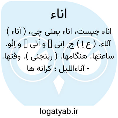 ( آناء ) آناء. ( ع اِ ) ج ِ اِنی ̍ و اَنی ̍ و اِنْو. ساعتها. هنگامها. ( ربنجنی ). وقتها.